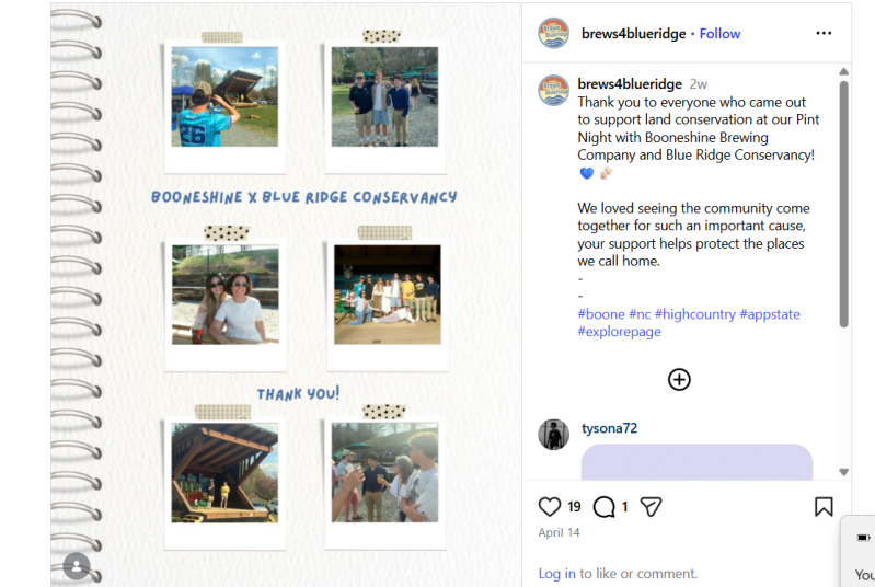 - Collaborated with students on a senior capstone project called Brews for Blue Ridge. Brews for Blue Ridge was a fundraiser for the Blue Ridge Conservancy that involved my group and I partnering with Booneshine Brewing Company and the Blue Ridge Conservancy. The event was held April 12th, 2026, and resulted in my group and I raising $380 for the Blue Ridge Conservancy's future projects.